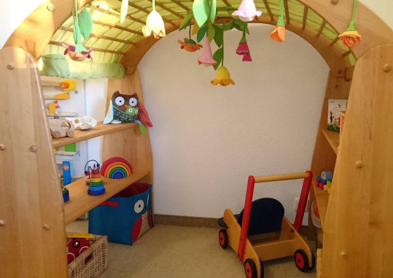 In unserem Wohnzimmer gibt es einen abgesicherten, für die Kinder unzugänglichen Rückzugsbereich. Dieser Bereich dient Mailo als Ruhezone, in die er sich zurückziehen und entspannen kann.